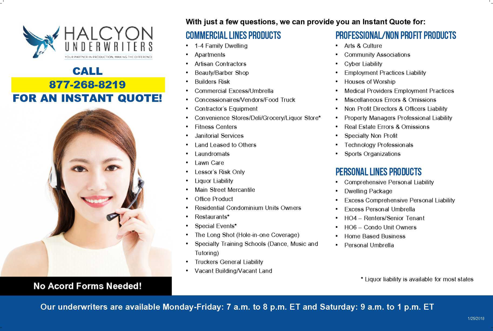 Learn more about these products and many more by clicking below on our Instant Phone Quote products. Contact your Small Business Underwriter today!